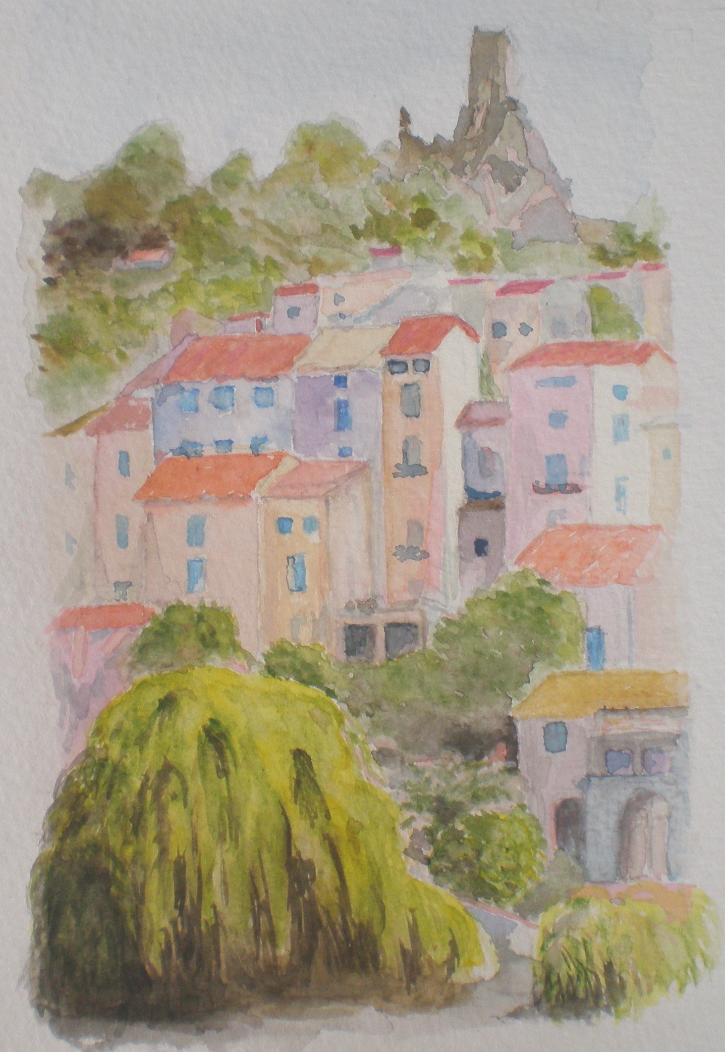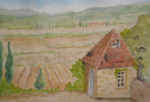 The first picture shows you a photograph of Roquebrun, followed by two interpretations by visiting artists. This is one of the places we like to take visitors to if they are staying in Quarante. Hover over any of the painting picture and you will be able to read something about the one in question. Then click again and it will show you an even bigger version of the painting. Some of the pictures have been cropped to make it easier to view.